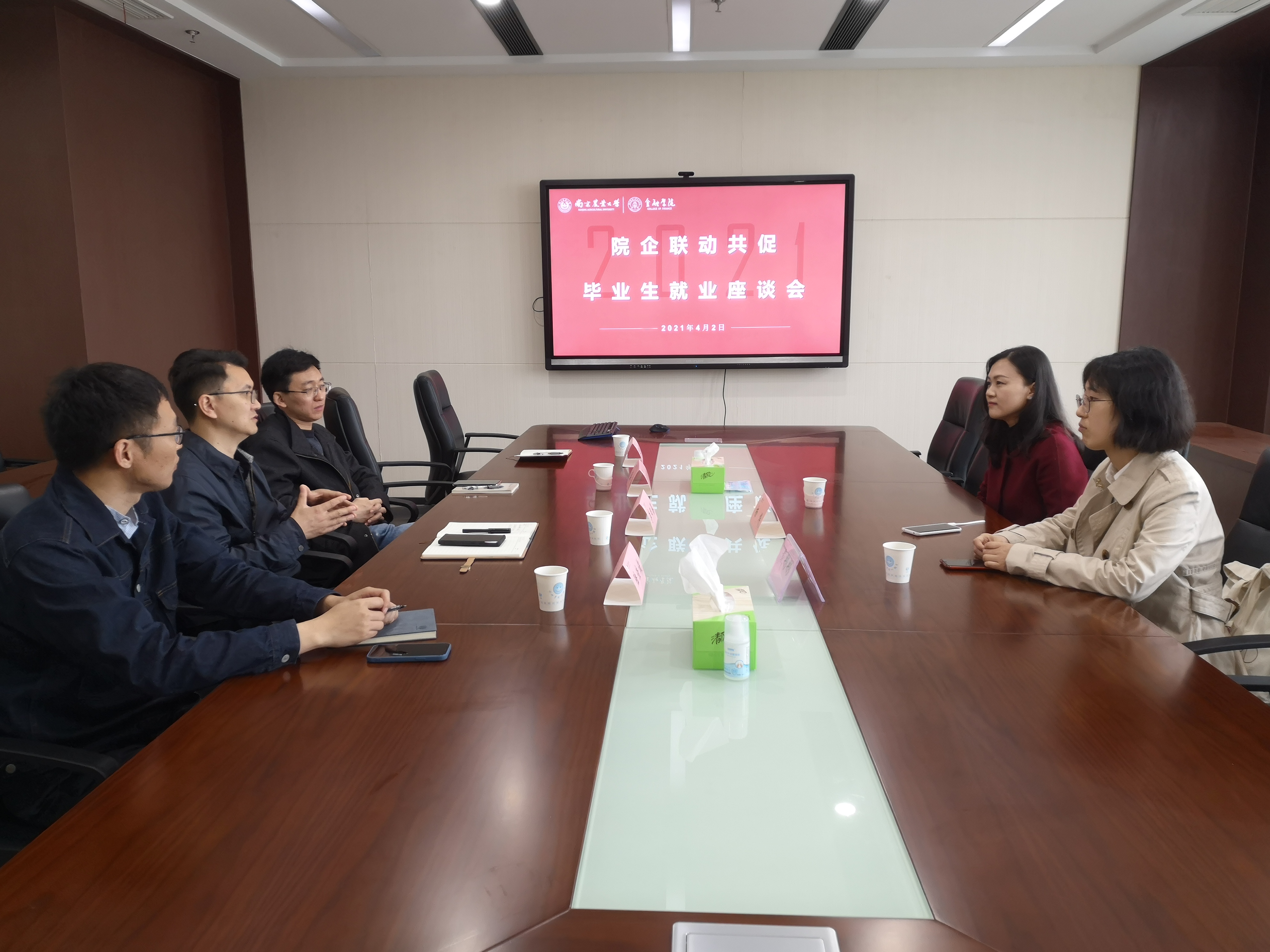 4月2日,437必赢会员中心与中国银行江苏省分行就共促毕业生就业工作开展座谈交流。中国银行江苏省分行人力招聘团队主管杨烨、职员戴彤彤一行到访437必赢会员中心,437必赢会员中心党委副书记李日葵、金融系盛天翔老师、辅导员陆佳俊、李迎军参加座谈。